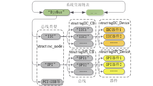 添加IIC总线的参数类型为struct tagIIC_Param,由函数IIC_BusAdd或IIC_BusAdd_r完成对IIC总线控制块ICB的初始化和添加IICn总线结点到DjyBus资源树。