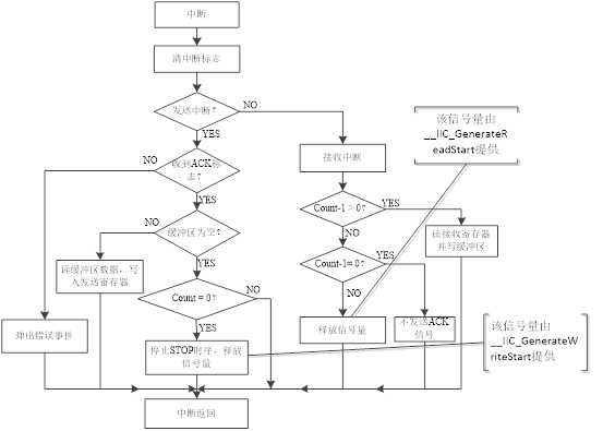 IIC模块对IIC总线驱动程序在中断中需要完成的功能作如下要求: