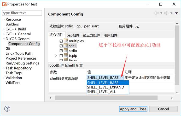通过DIDE中配置,可以裁减掉shell,也可以配置shell功能的强弱,以调节flash和ram占用,控制成本。