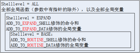 若shell level =EXPAND,则在BASE组的基础上,增加一组基本的shell命令以及一组全局变量。